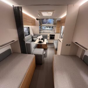 L’extérieur de la caravane a été remodelé et de nouveaux éclairages ont été installés.