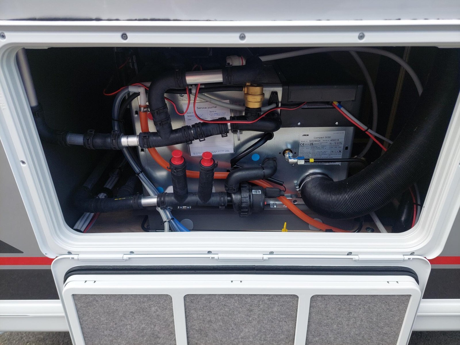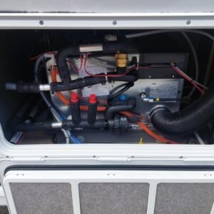 Équipement électriquement autonome sans batterie (chargeur de batterie avec booster, panneau de contrôle pour affichage du niveau de batterie et d’eau douce, prise 12 volts dans la zone TV)