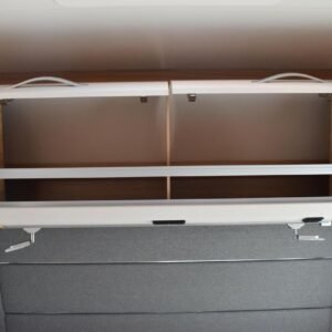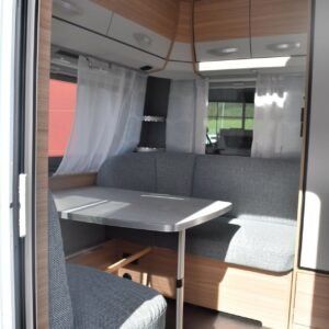 Lorsque vous entrez dans la caravane, la première chose que vous voyez est le magnifique canapé, qui est à la fois confortable et doté de nombreux rangements. Si vous avez besoin d’un espace de couchage supplémentaire, le canapé peut facilement être converti en espace de couchage. Une liseuse pour ceux qui en ont besoin. Les placards muraux offrent également de nombreux rangements. De superbes lits simples avec de bons matelas rendent le sommeil parfait.