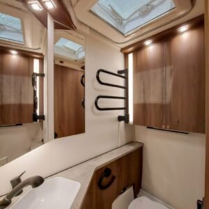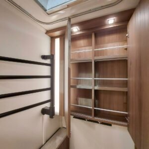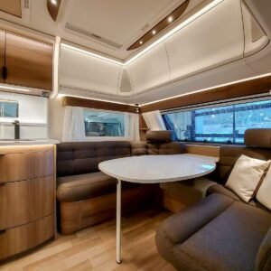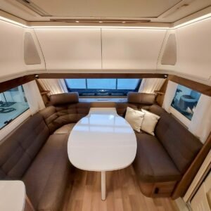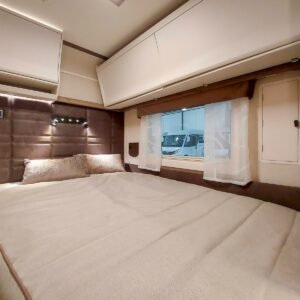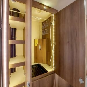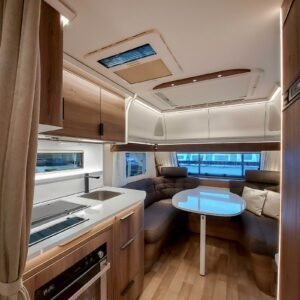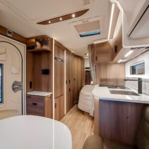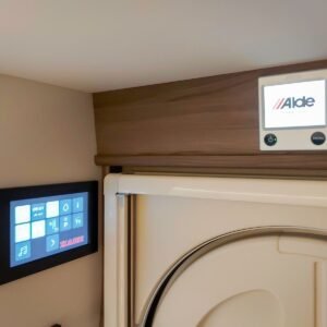Modèle Kabe Brillant 470 XL 2025 bien équipé. Cuisine avec grand réfrigérateur et four. Pack confort comprenant des oreillers cervicaux, une trappe de chargement, un sèche serviettes et un réglage électrique du lit. Il y a aussi un placard suspendu modulable dans la zone nuit, une entrée électrique, une antenne externe pour le routeur et 2 trappes de toit heiki, elle est livré avec une radio DAB+. Voiture élégante et stylée avec chauffage central à eau Alde.