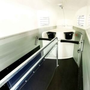 Avec ce van pour chevaux XANTHOS AERO de couleur noire, le constructeur allemand Humbaur présente un chef-d’œuvre en termes d’esthétique et de confort de conduite. La proue aérodynamique de la remorque réduit la résistance de l’air pendant la conduite. Le résultat : moins de bruit de vent, une consommation de carburant réduite, plus d’espace dans la sellerie. En combinaison avec le châssis de sécurité Humbaur pour une tenue de route stable et les pneus adaptés à 100 km/h, le cheval et le cavalier se sentent également à l’aise avec ce van pour chevaux.